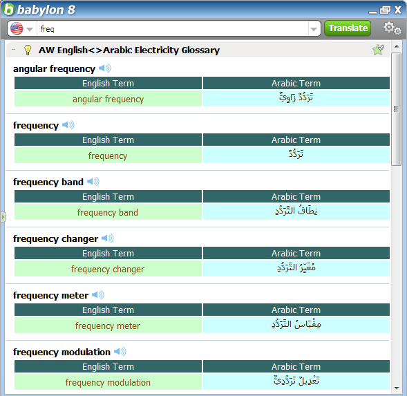 Description: AW English<>Arabic Electricity Glossary (Babylon and GoldenDict version) contains terms used in electricity field. Please email me if you have inquiry or comments. Glossary screenshot 1 & Glossary screenshot 2. This glossary is searchable in Arabic and English. | ||||||||||||||||||||||||||||||||||||||||||||||||||||||||||||||