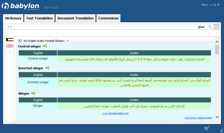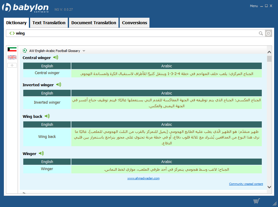 AW English<>Arabic Football Glossary (Babylon and GoldenDict