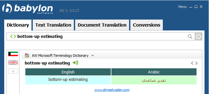 AW English<>Arabic Microsoft Terminology Dictionary No. of entries: 22486 922 KB Last Updated: 10 November 2020 |