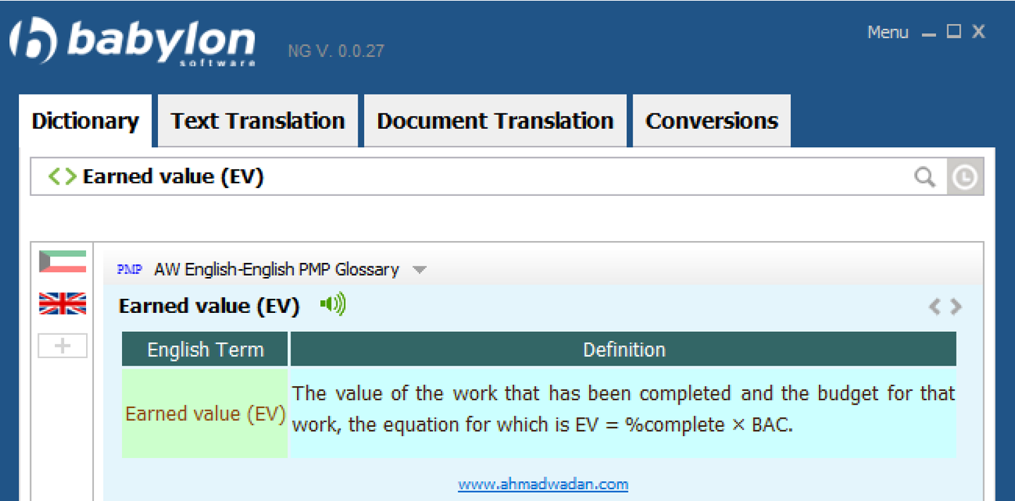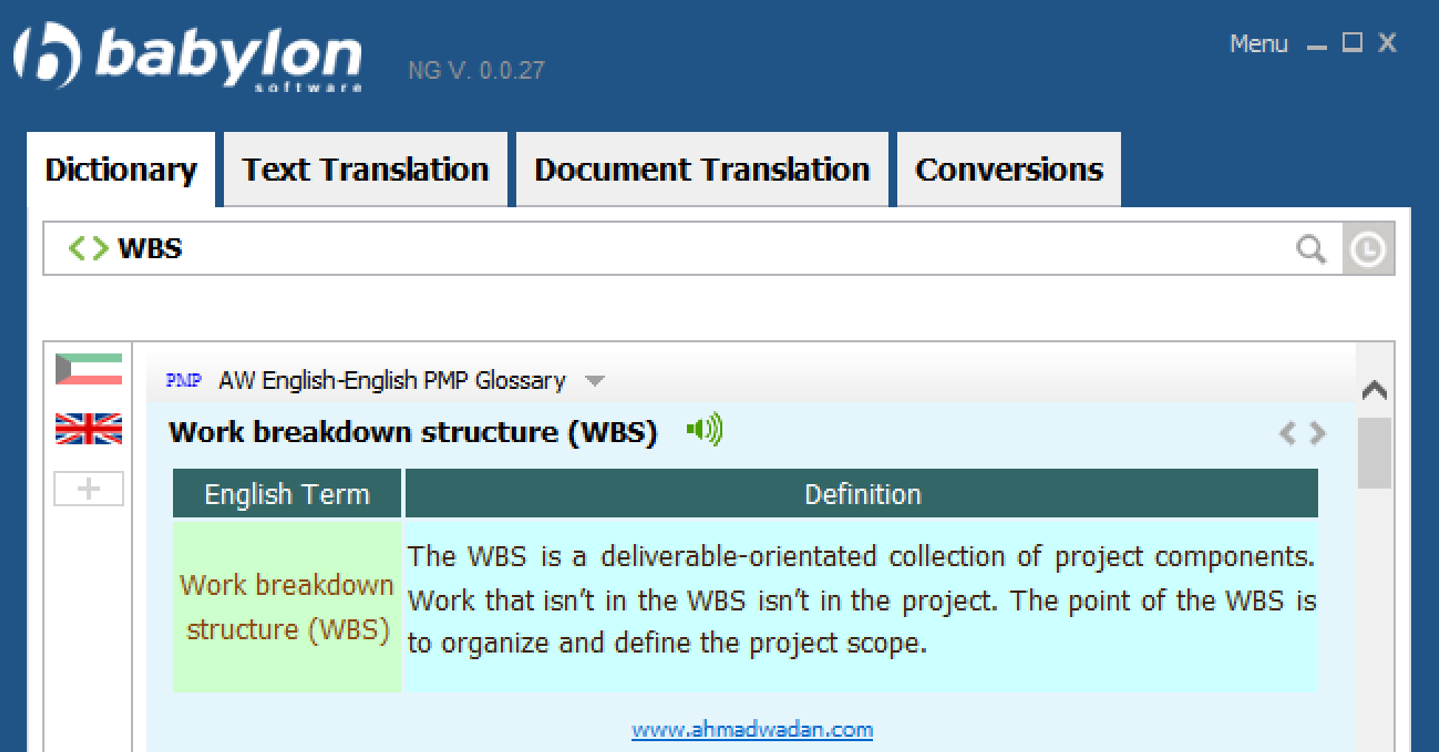 Description: AW English<>English PMP Glossary Glossary (Babylon and GoldenDict version) contains terms used in project management field. Glossary screenshot 1 & Glossary screenshot 2. This glossary is searchable in English. | ||||||||||||||||||||||||||||||||||||||||||||||||||||||||||||||